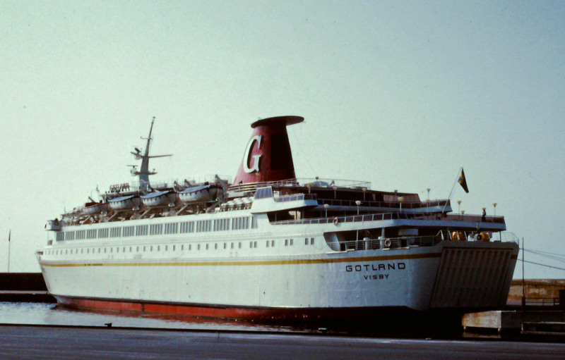 launched at 6643 grt for Rederi A/B Gotland by Brodogradliste, Trogir. 123.9m x 20.5m 1747 passengers.