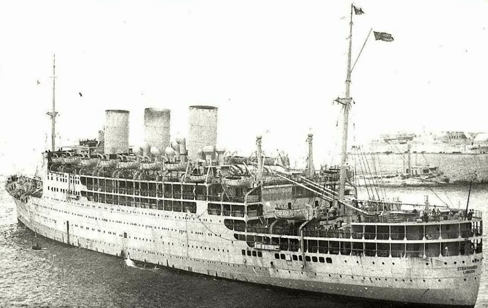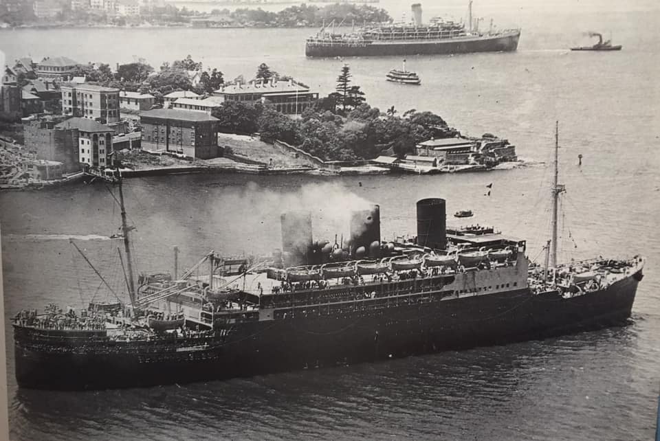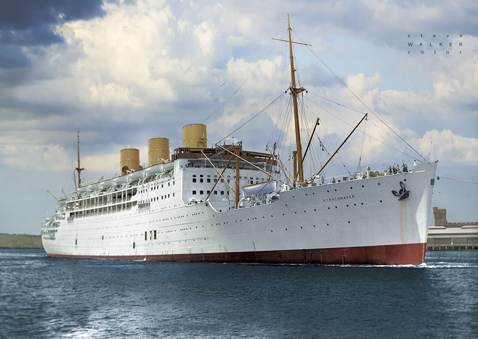 Strathnaver leaving Sydney with the Orcades during WW2