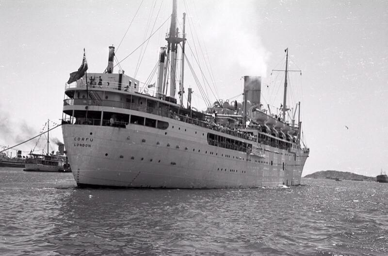 Aden harbour 1954, on the day of the Queen’s visit. All ships dressed overall but CORFU didn’t get the memo