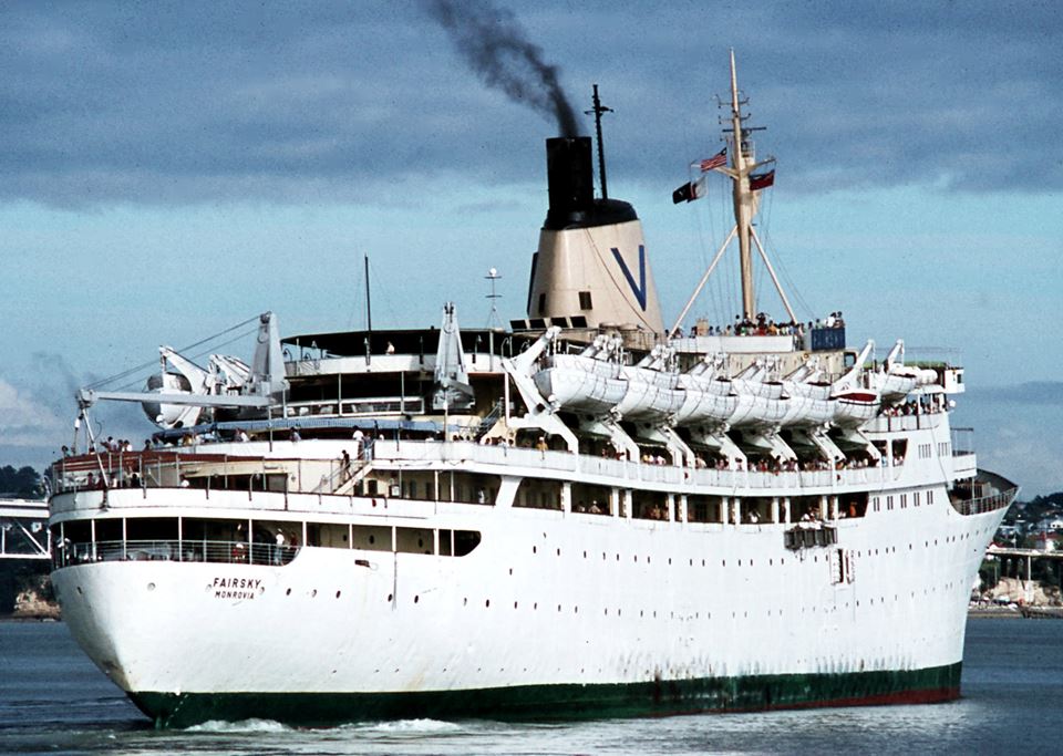 Fairsky of Sitmar Destroyed by fire 1980, scrapped Hong Kong. Image: Mike Cornwall